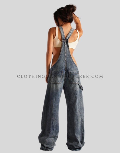 Wholesale Adjustable Shoulder Strap Denim Jumpsuit