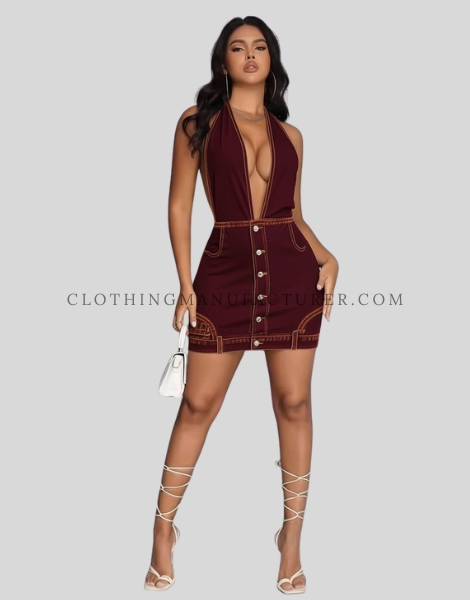 Wholesale Backless Denim Dress