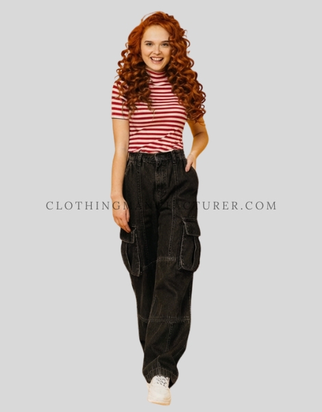 Wholesale Custom Loose Fit Denim Cargo for Women