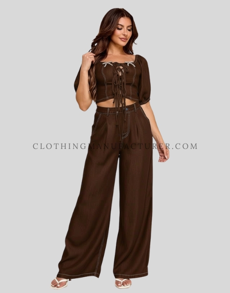 Wholesale Denim Co-Ord Set with Lace-Up Front