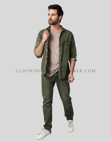 Wholesale Double Pocket Silky Denim Shirt for Men