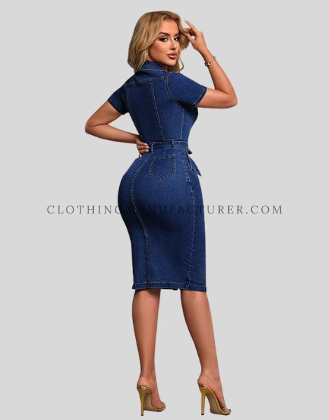 Wholesale Drawstring Waist Denim Dress