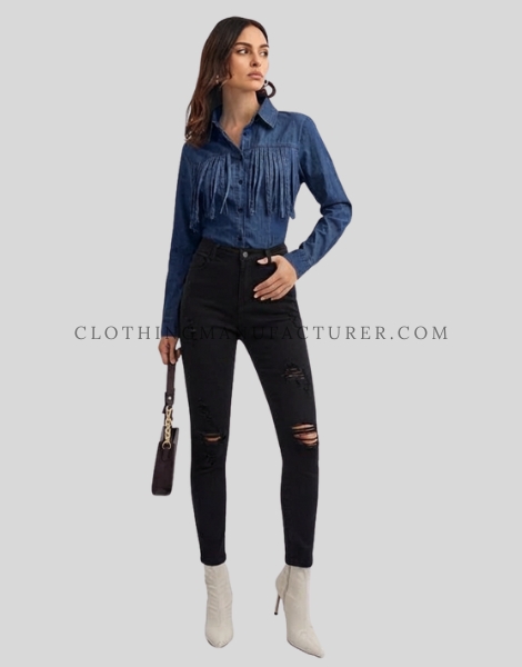 Wholesale Fringe Denim Shirt for Women