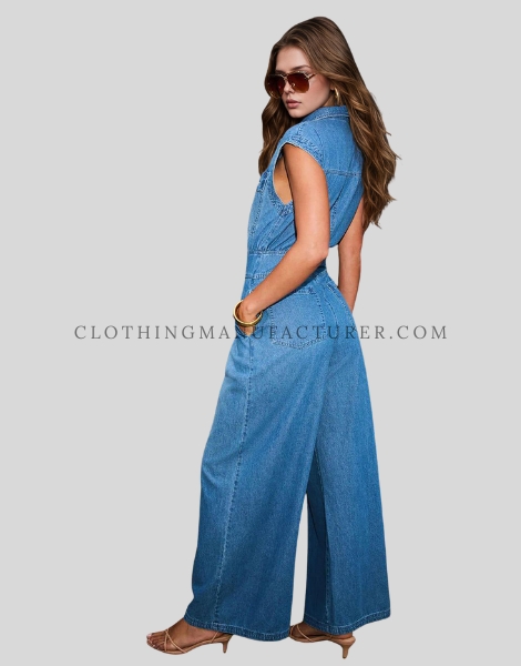 Wholesale Front Button-Up Denim Jumpsuit