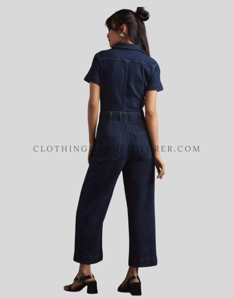 Wholesale Front Zipper Denim Jumpsuit