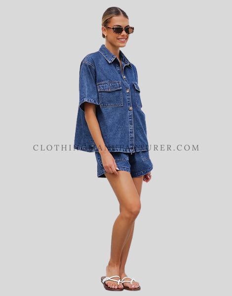 Wholesale Half Sleeve Denim Shirt for Women