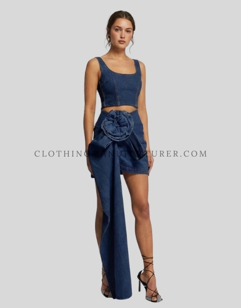 Wholesale Mini Denim Skirt with Large Flower Sash