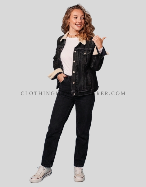 Womens Denim Jacket with Sherpa Collar