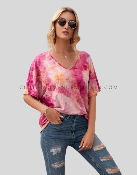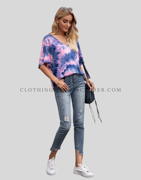 Wholesale Womens Tie Dye Cold Shoulder T-Shirts